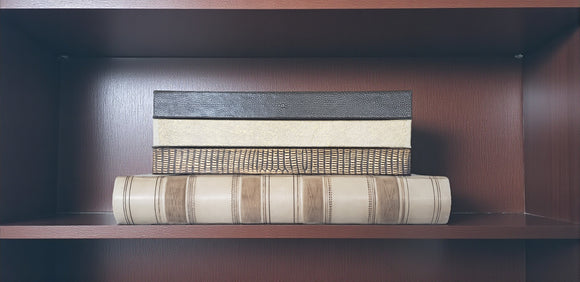 Vellum Home is an Atlanta based home accessory line. We offer high quality, design driven products that are carefully crafted by hand. Our ever growing selection includes decorative quote stacks, leather bound boxes embellished with quotes in hand distressed gold lettering, and classic leather, linen, and hide bound book sets.